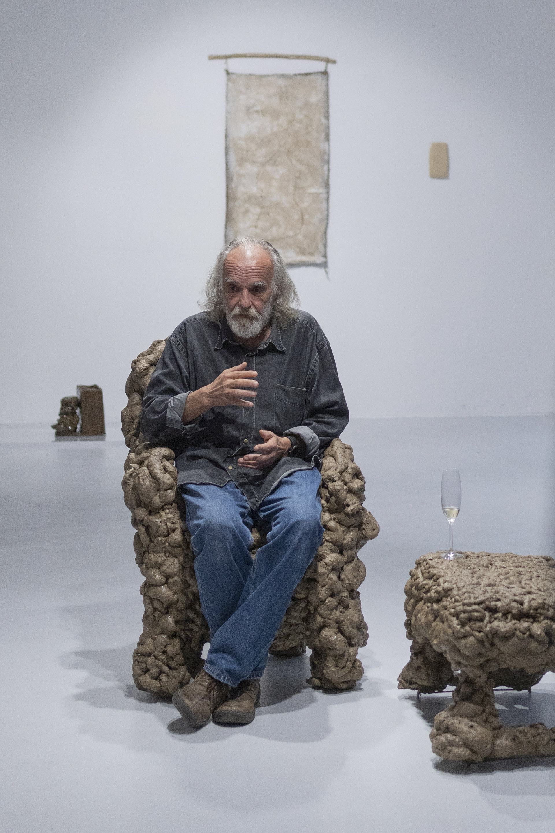 Výstava jednoho z nejvýraznějších umělců brněnského konceptuálního okruhu osciluje – na první pohled poněkud paradoxně – kolem materiálu. Dematerializace uměleckého díla jako jedna ze základních devíz konceptuálního umění totiž tvorbě Mariana Pally (1953) není vlastní, což dokládají mimo jiné právě jeho práce s hlínou, jimž se systematicky věnuje od počátku 80. let. Tehdy Palla začal, patrně v souvislosti s přestěhováním na venkov, používat v tvorbě hlínu z vlastní zahrady a z přilehlých polí. Hlína se stala nezbytnou součástí jeho meditativně laděných akcí, které připomínaly primitivní archaické rituály, a nezávisle na akcích začala vznikat také svébytná díla materiálová. Z přirozeně vysychající hlíny Palla vytvářel objekty a asambláže a čajem či vodou ředěnou hlínou maloval obrazy a kresby, jež v jeho ateliéru vznikají dodnes.