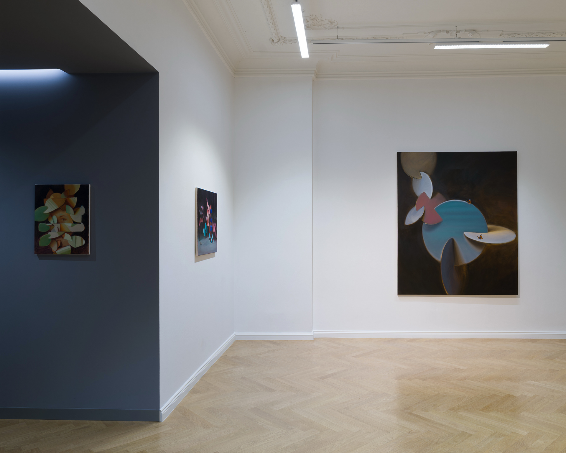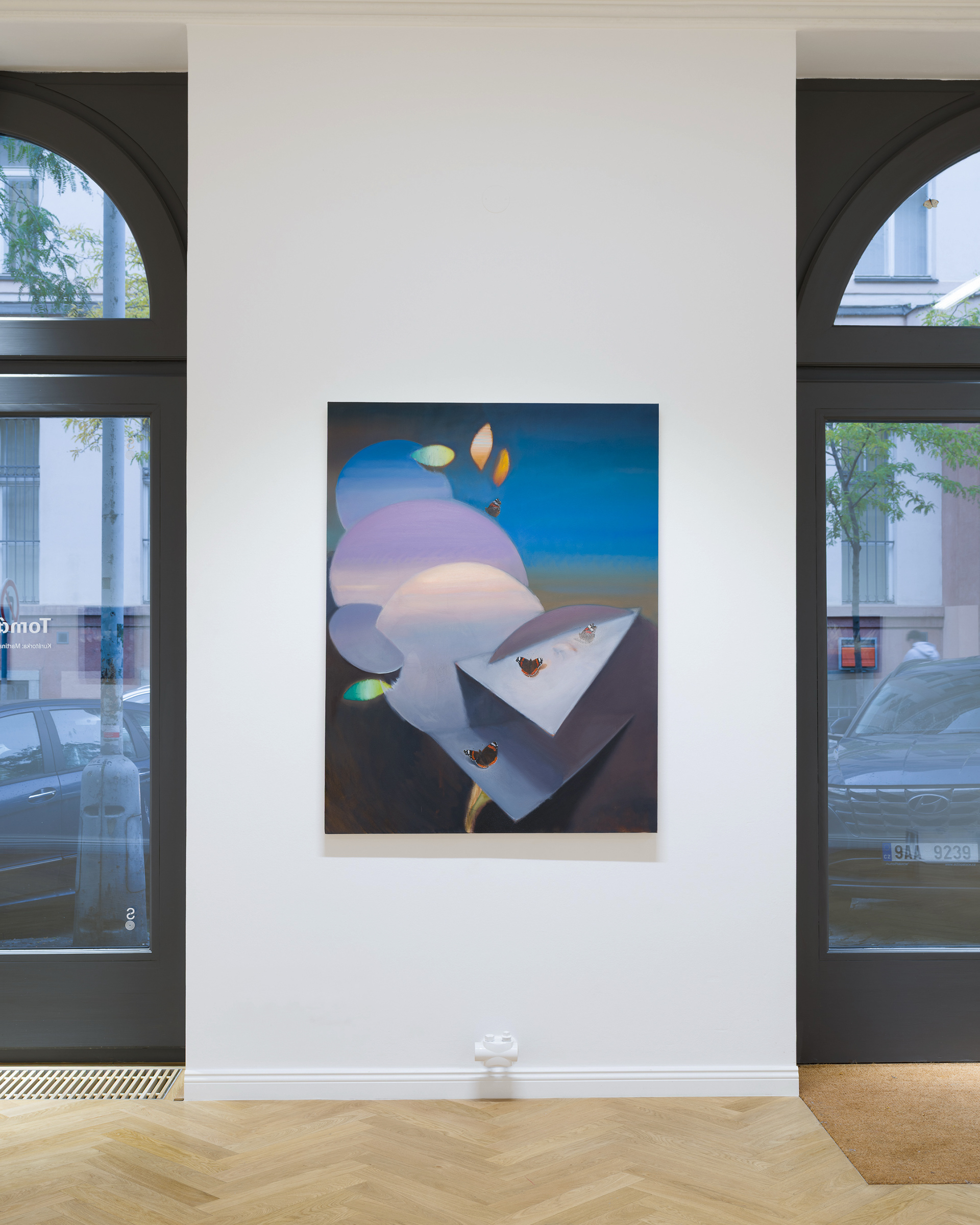 Certain painting strategies used by Tomáš Tichý bring his work close to that of the Leipzig and Cluj painting schools. Similarly to Mathias Weischer or Corinne Wasmuht, Tichý also constructs pictorial spaces that relate to reality but at the same time expose its illusory, artificial, and alien nature through various unsettling disruptions. The paintings can thus evoke glitches, digital noise, or a broken interface. Compared to the work of the aforementioned artists, however, Tomáš Tichý’s paintings appear significantly calmer and more harmonious. The mysterious atmosphere of unknown worlds, which he has developed especially in his latest, more geometrically conceived paintings, has something in common with the slow-motion shots of cosmic bodies in Nolan's film Interstellar. Tichý’s paintings also evoke a feeling of vast space, in which the passage of time takes place in dimensions completely different from those we are familiar with. However, Tichý ultimately manages to connect this vision of faraway cosmic spheres and parallel spaces through the illusory motif of the butterfly, creating a single continuous universe in which we do not have the answers to some questions, and the imaginative power of mystery remains tantalizingly provocative.