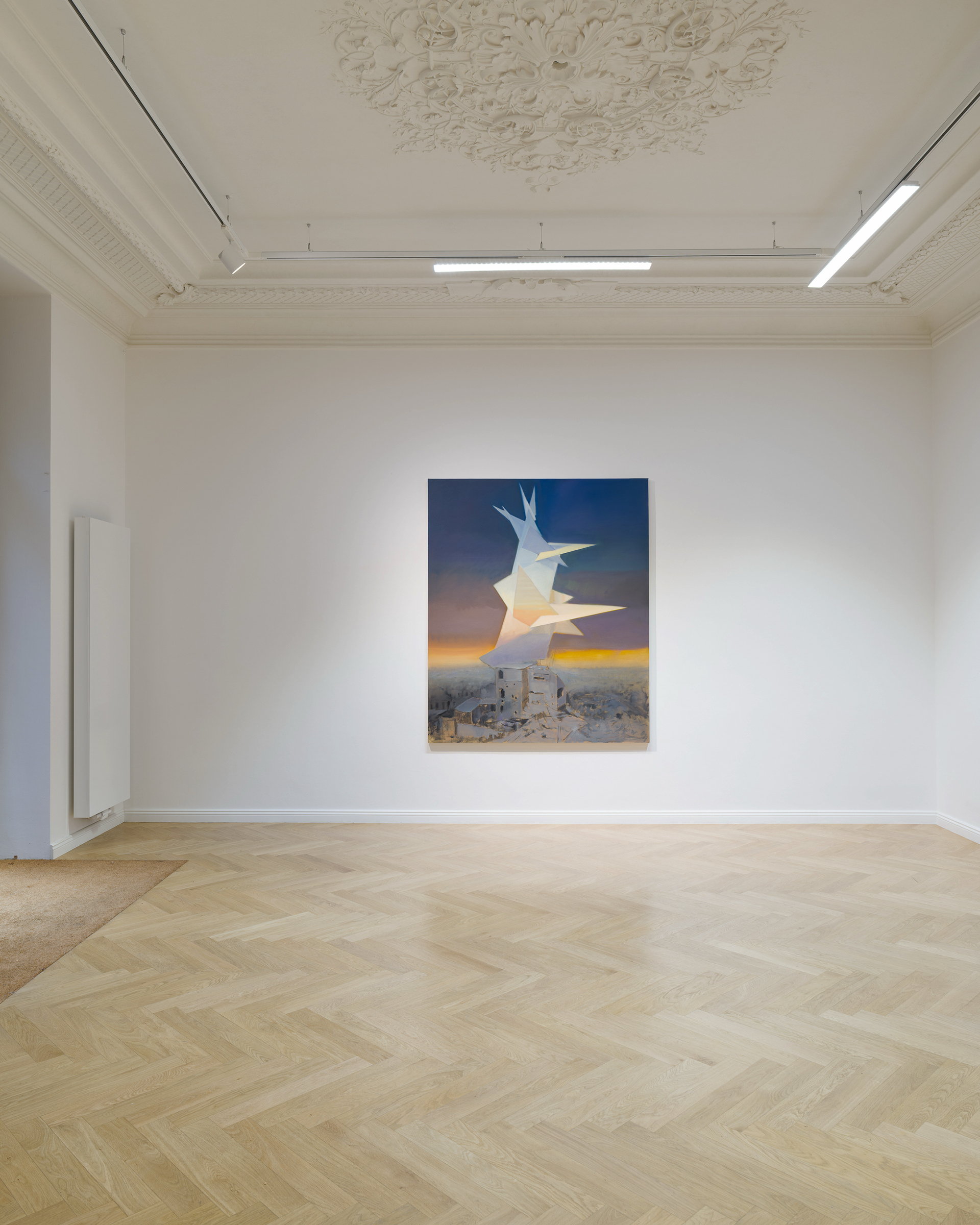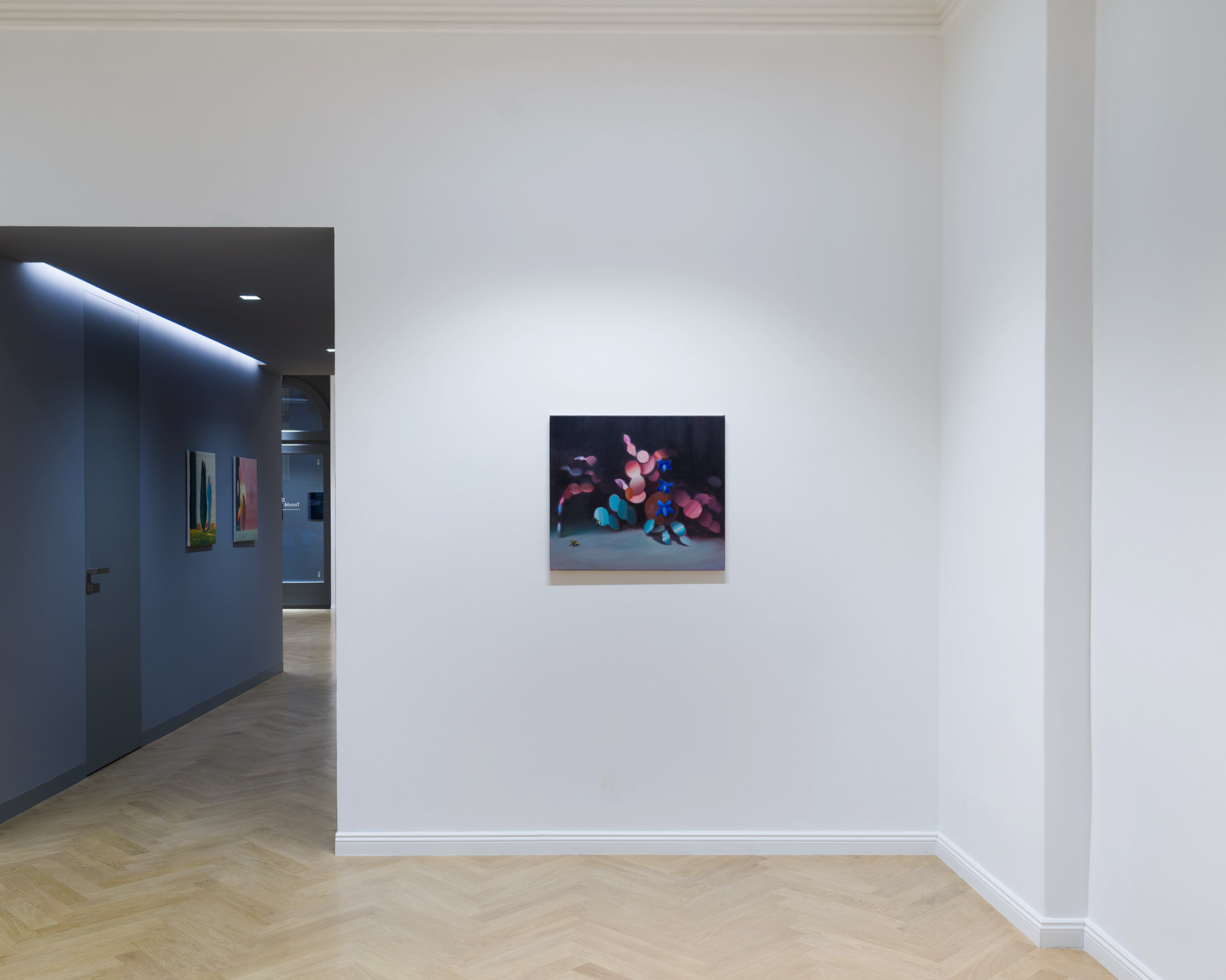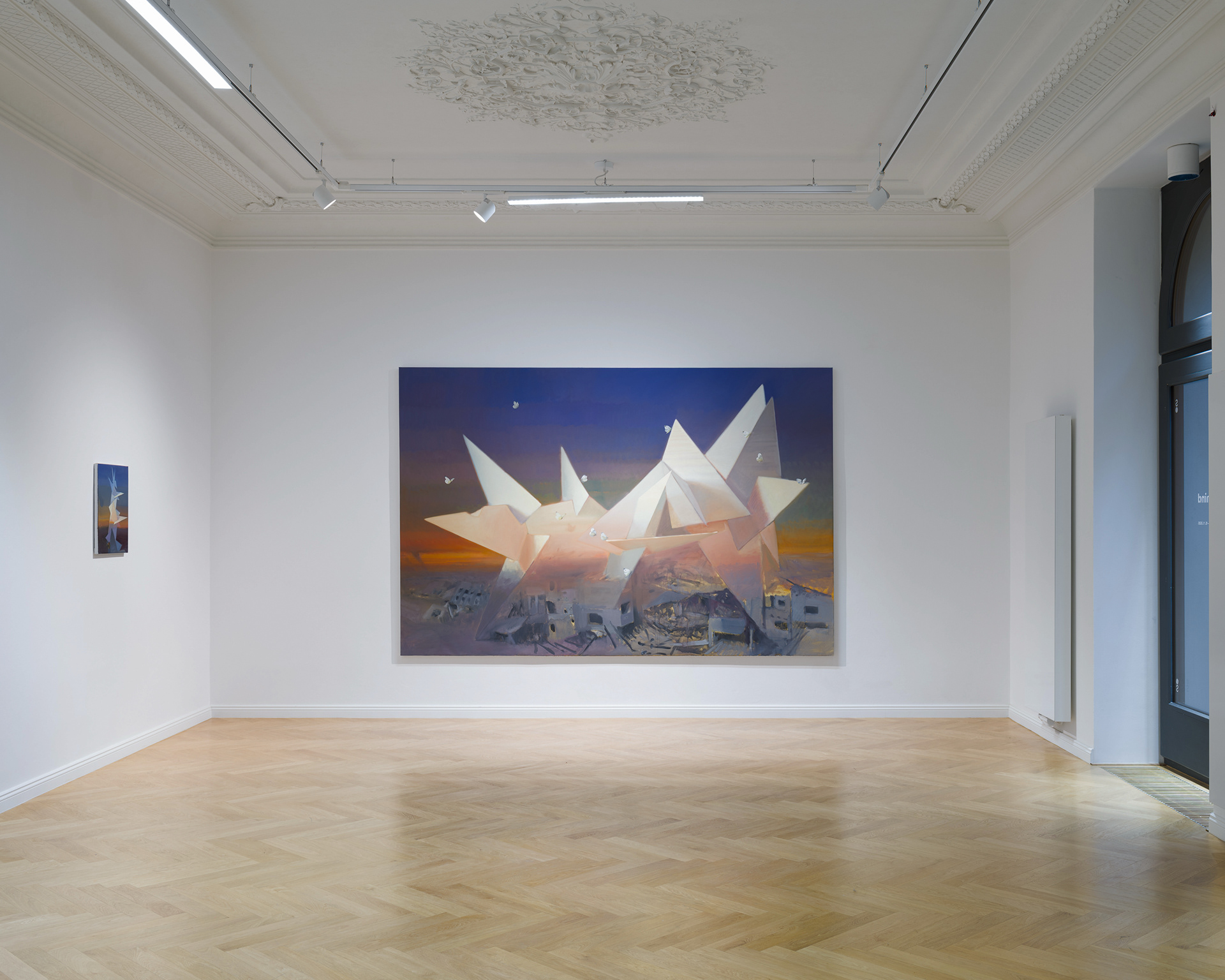 Although the shapes in the paintings sometimes grow out of ruins and can appear threatening, the overall tone of the paintings is harmonious and calming. It’s as if something dangerous and at the same time beautiful and fascinating was growing out of the boundless destruction and attracting the butterflies to rest on it. And in spite of the fact that Tomáš Tichý’s paintings deal with themes of threat, tension, anxiety and emptiness that correspond with the state of today’s society, they do not appear hopeless. His ability to use painterly means, especially colour and light, to balance up dark and difficult topics, is one of the core values of his work.