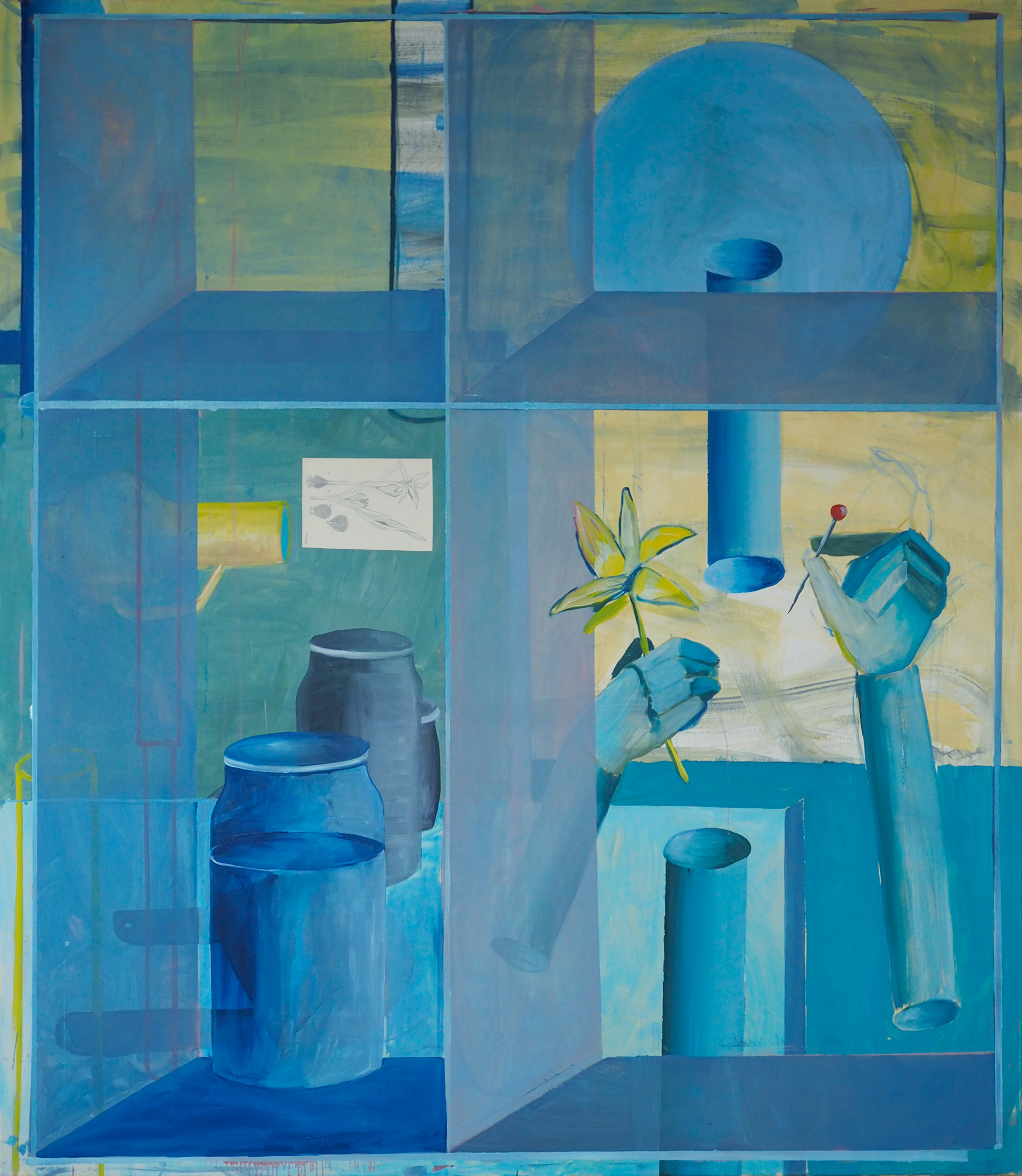 Nezvaný host nepůsobí v prostředí obrazu přímo destruktivně, spíše sem vnáší neurčitý pocit nebezpečí, který zosobňují i další prvky autorčina symbolického slovníku, založeného na významové dualitě. Běžné domácí rekvizity jako špendlíky, nože či nůžky se mění v latentní nástroje zraňování. Krásná a křehká květina je ve skutečnosti prudce jedovatá rostlina, na niž neexistuje antidotum. Silná vizuální i filozofická metafora pootevřené zásuvky, známá z freudovských i dalíovských interpretací těla a nevědomí, nás přitom nenechává na pochybách, že malby odkazují rovněž k vnitřnímu prostoru lidské psychiky. K neuchopitelným proudům a úzkostem, které se vynořují právě v okamžicích, kdy dojde k narušení obvyklého řádu věcí.