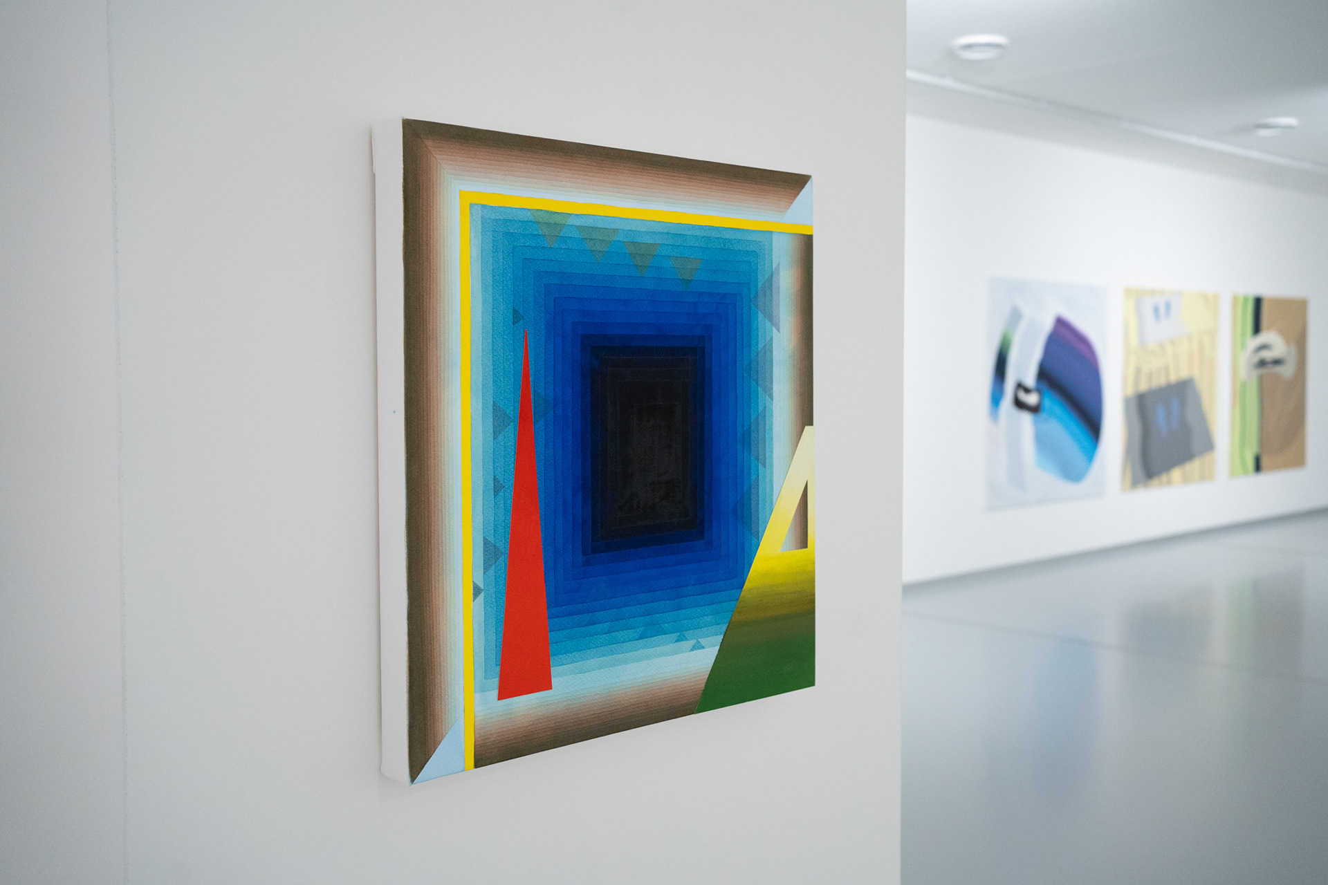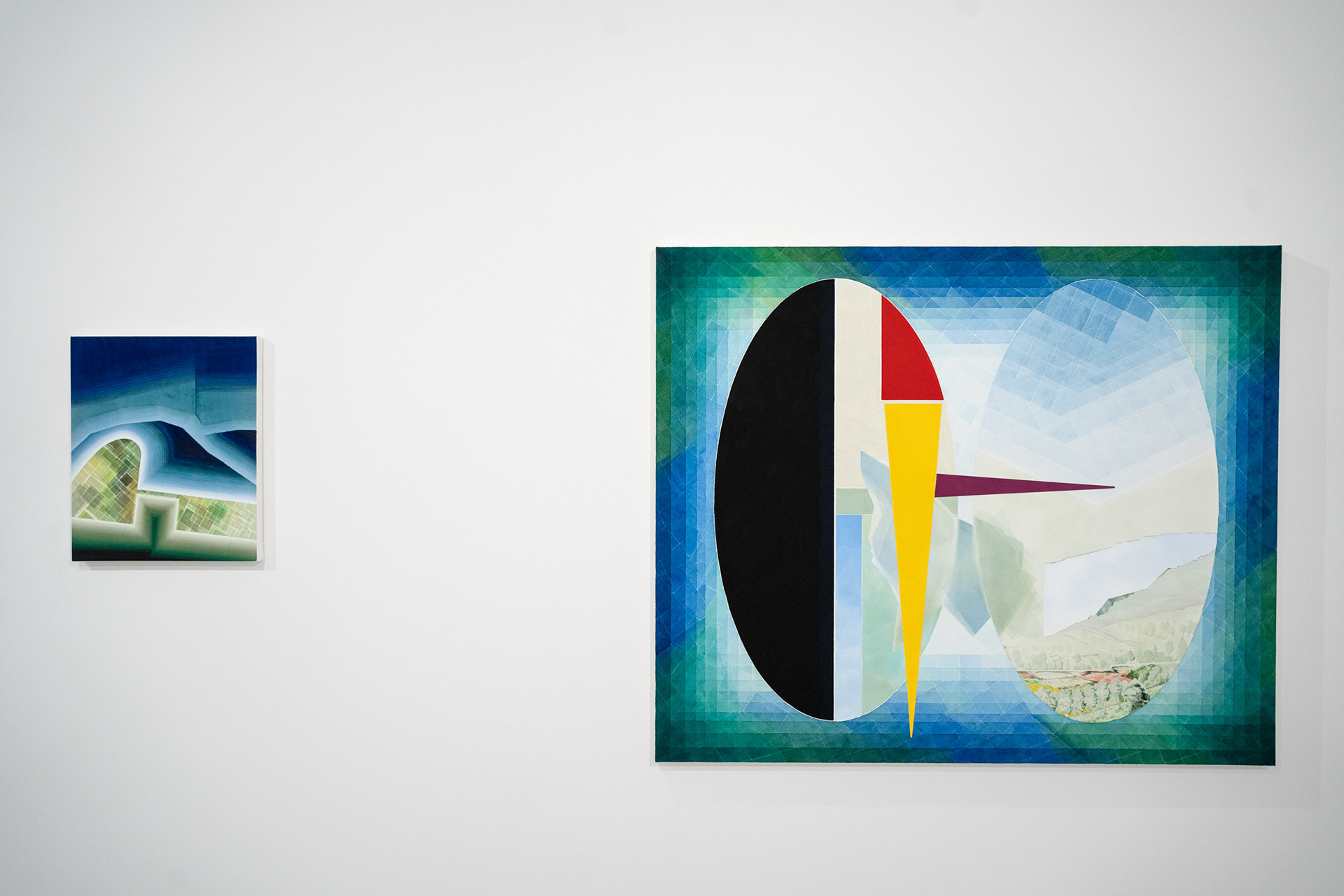 Pro tvorbu Argišta Alaverdyana (1991) i Lukáše Karbuse (1981) je charakteristická specifická imaginace a precizní formální provedení, které se u každého z obou autorů pojí s odlišnými východisky, tématy i malířskou, resp. kreslířskou technikou. Zatímco Argišt Alaverdyan ve svých malbách často čerpá ze světa nových technologií a ze zkušeností hráče počítačových i deskových her, abstraktní akvarely Lukáše Karbuse byly vždy ukotveny především ve vztahu ke krajině. V posledních letech však jeho akvarelům začaly stále více dominovat geometrické útvary, které v obrazové ploše vymezují nové prostorové dimenze s jejich vlastními pravidly, a s tímto principem se v obecné rovině setkáváme i v malbách Argišta Alaverdyana. Právě svébytná koncepce obrazového prostoru s průhledy do dalších vrstev se tedy stala hlavním tématem výstavy, která umožňuje zvýznamnit určité aspekty v tvorbě obou umělců a porovnat jejich přístupy k abstraktní malbě, ke konstrukci obrazu i k revizi klasické strategie obrazu v obraze.