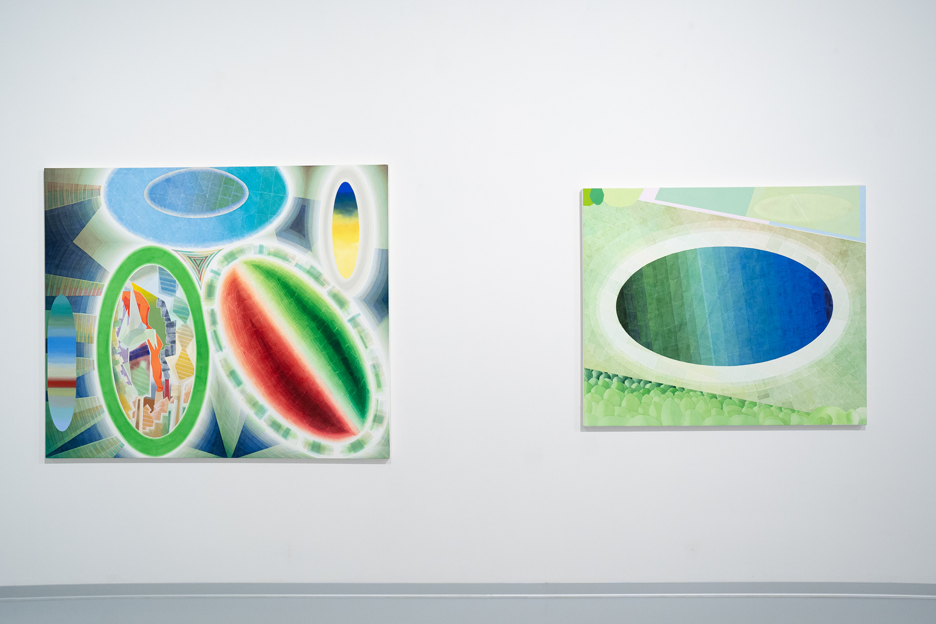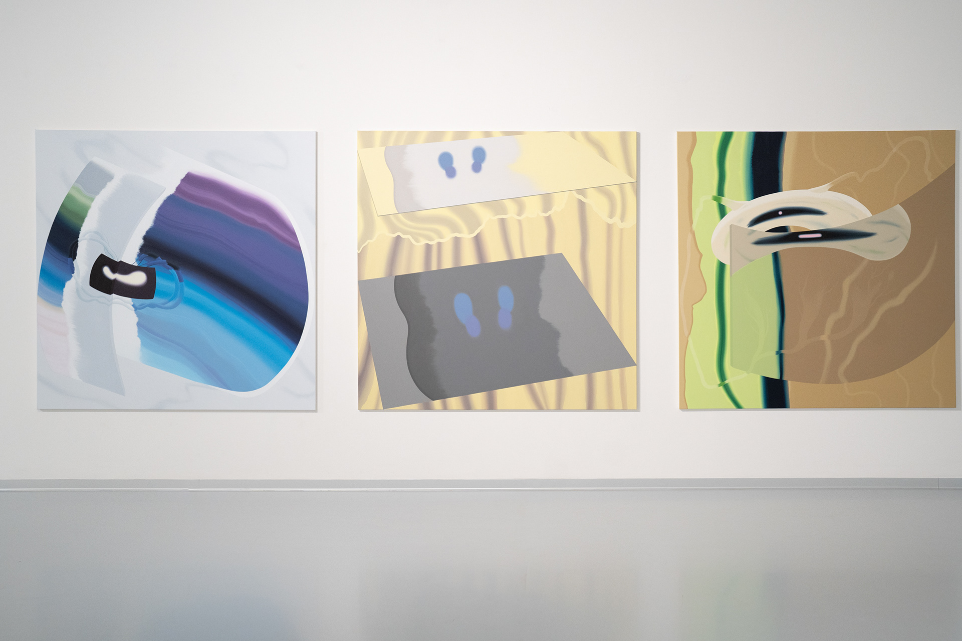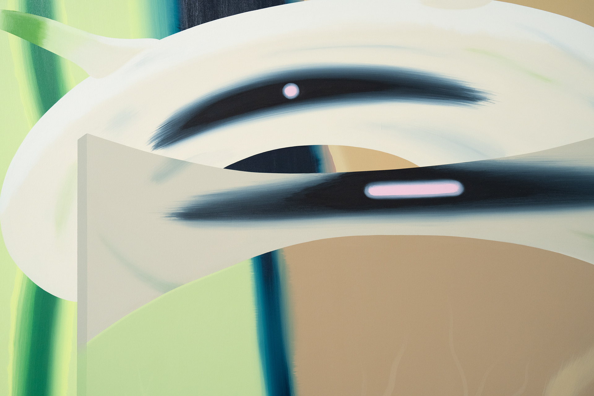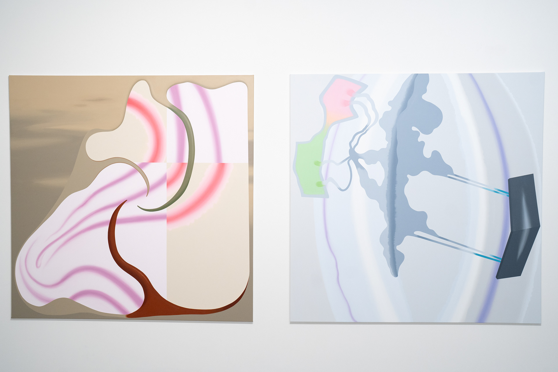 S principem alternativních prostorových dimenzí pracuje ve svých posledních malbách také Argišt Alaverdyan, malíř s arménskými kořeny, jenž podobně jako Lukáš Karbus patří k nejzajímavějším umělcům své generace. V cyklu maleb nazvaném Flowing Positions (2023–2024), kterým volně navazuje na předchozí série Visitors (2023) a Entity (2022), Alaverdyan tematizuje především proměnu identity v závislosti na změně prostředí. V abstraktních malbách, jejichž barevnost, struktura i hladký, splývavý rukopis odkazují k vizualitě digitálního prostředí, ale rozvíjí i psychologické otázky obecnějšího rázu.