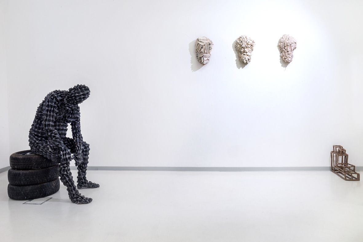 Po formální stránce se ve výstavě střetávají dva technologické přístupy, spjaté se dvěma křehkými materiály, sklem a papírem, jež se ve Skalického tvorbě objevují poprvé. Hlavy z hutního skla navazují na metodu, kterou umělec používal i u svých textilních soch. Namísto forem historických soch ale v tomto případě použil také formy vlastní, do nichž vymodeloval podobizny náhodně vybraných bezdomovců. Do výsostně ušlechtilého, estetického materiálu tedy Skalický převádí výrazné rysy tváří mužů z okraje společnosti. Masivní hmota skla tváře deformuje do velmi expresivních útvarů, které mohou evokovat i stopy násilí nebo postupujícího rozkladu. Na rozdíl od textilu, jenž v sochařských formách vytvářel bohaté vnitřní struktury, přejímá sklo se svými specifickými vlastnostmi jen určité rysy formy a následně se v oblých objemech rozpíná, bují, smršťuje a deformuje v potenciálně nekonečný variantách, v nichž významnou roli hraje také barva a světlo. Tvarové proměny identických forem následně Skalický rozvíjí i v dalších materiálech, jako jsou sádra, beton nebo Acrystal, fascinován jejich morfologickými možnostmi.