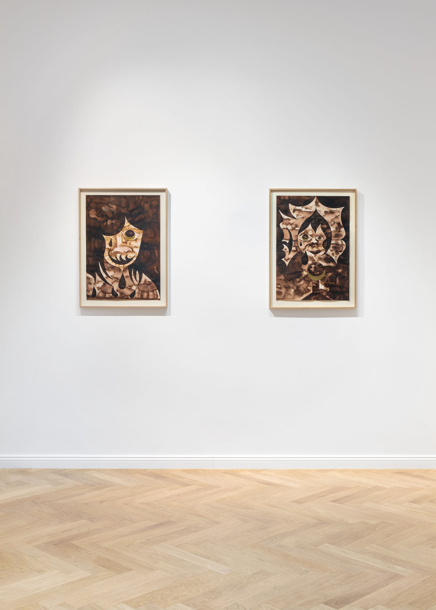 Of all the artistic techniques, however, watercolour remains the most characteristic for Anežka Hošková, as its spontaneity and organic nature best suit her personality. The coloured pigments washed with water largely defy control or a firm grip. They spill and melt into each other to create forms and structures that the author adjusts with lively brush strokes, within the limits of the sharp drawn lines. Relaxed watercolour paintings evoke swirling energies or clouds, creating the idea of a dreamscape illuminated by light, in which the immediacy of gestures and feelings is preserved along with the fleeting mutability of the moment. The aqueous solution of usually monochromatic colours carries with it a kind of lyrical syntax, linked to a gradual, organic movement that spreads vibrations within the paintings, making them draw us in and activate our imagination.